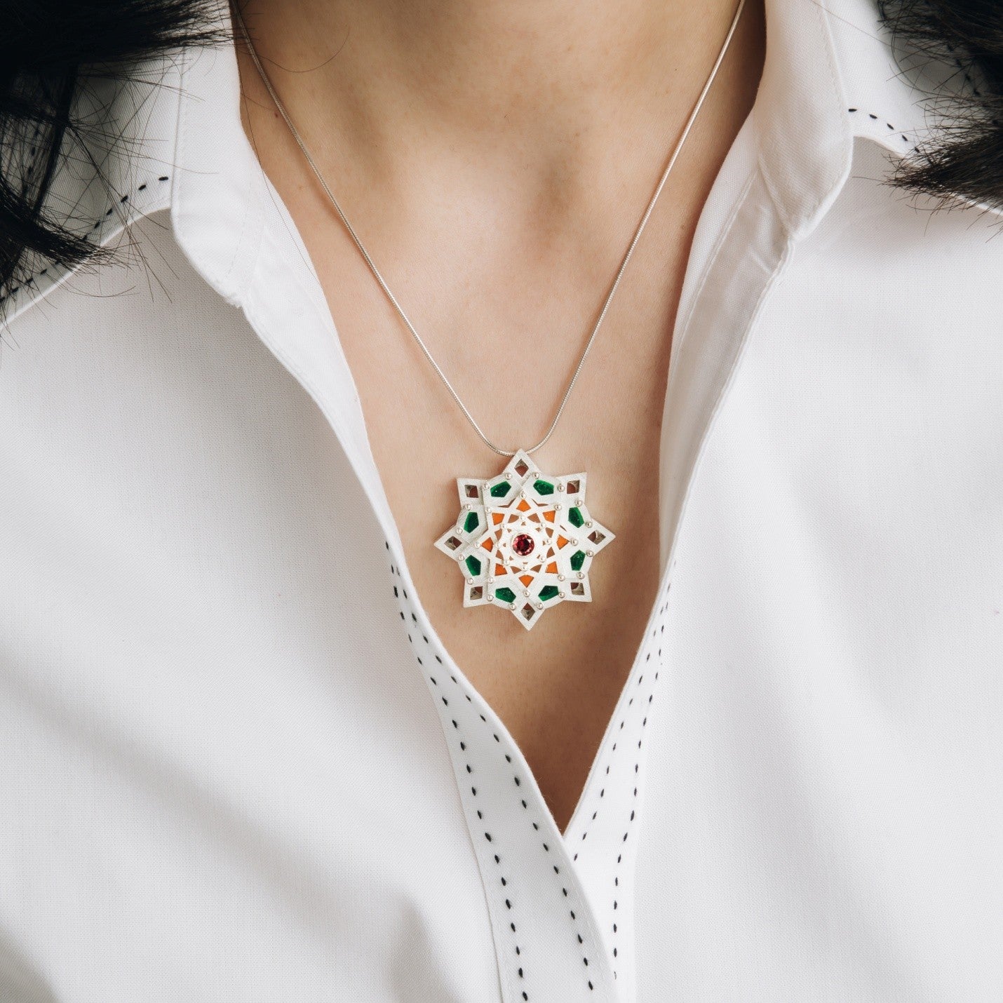 The Soul Star Pendant draws its form from the eight-pointed star tiles found across Persian architecture — a symbol of balance, protection, and the eternal connection between the earthly and the divine.